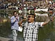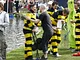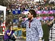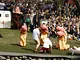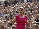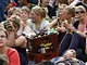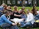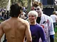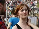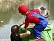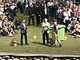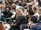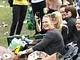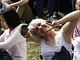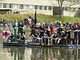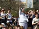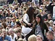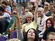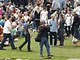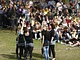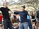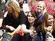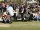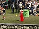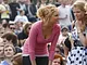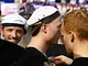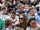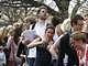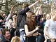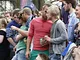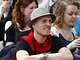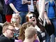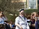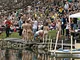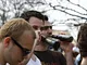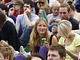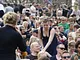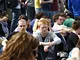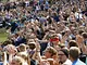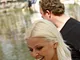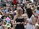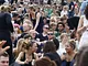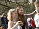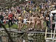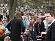 Vagtskiftet ved Marselisborg Slot skærtorsdag kl. 12 tiltrak mange fremmødte, mens politiets indsatsleder undervejs tog sig tid til at besvare spørgsmål fra en nysgerrig dreng.