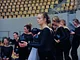 Vagtskiftet ved Marselisborg Slot skærtorsdag kl. 12 tiltrak mange fremmødte, mens politiets indsatsleder undervejs tog sig tid til at besvare spørgsmål fra en nysgerrig dreng.