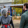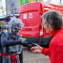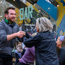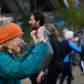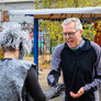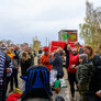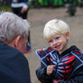 Vagtskiftet ved Marselisborg Slot skærtorsdag kl. 12 tiltrak mange fremmødte, mens politiets indsatsleder undervejs tog sig tid til at besvare spørgsmål fra en nysgerrig dreng.
