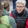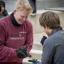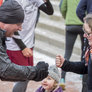 Vagtskiftet ved Marselisborg Slot skærtorsdag kl. 12 tiltrak mange fremmødte, mens politiets indsatsleder undervejs tog sig tid til at besvare spørgsmål fra en nysgerrig dreng.