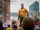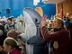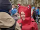 Vagtskiftet ved Marselisborg Slot skærtorsdag kl. 12 tiltrak mange fremmødte, mens politiets indsatsleder undervejs tog sig tid til at besvare spørgsmål fra en nysgerrig dreng.