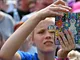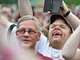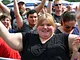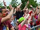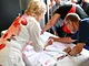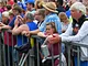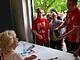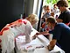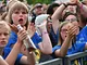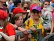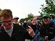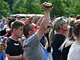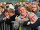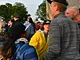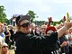 Vagtskiftet ved Marselisborg Slot skærtorsdag kl. 12 tiltrak mange fremmødte, mens politiets indsatsleder undervejs tog sig tid til at besvare spørgsmål fra en nysgerrig dreng.