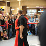Vagtskiftet ved Marselisborg Slot skærtorsdag kl. 12 tiltrak mange fremmødte, mens politiets indsatsleder undervejs tog sig tid til at besvare spørgsmål fra en nysgerrig dreng.