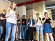 Vagtskiftet ved Marselisborg Slot skærtorsdag kl. 12 tiltrak mange fremmødte, mens politiets indsatsleder undervejs tog sig tid til at besvare spørgsmål fra en nysgerrig dreng.
