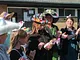 Vagtskiftet ved Marselisborg Slot skærtorsdag kl. 12 tiltrak mange fremmødte, mens politiets indsatsleder undervejs tog sig tid til at besvare spørgsmål fra en nysgerrig dreng.