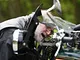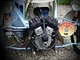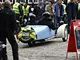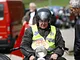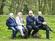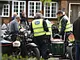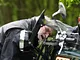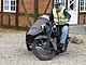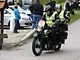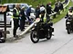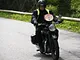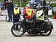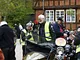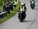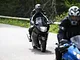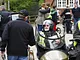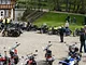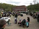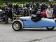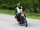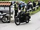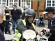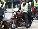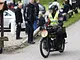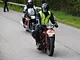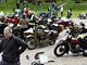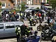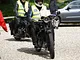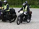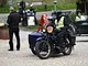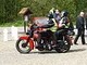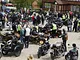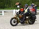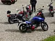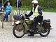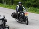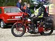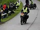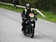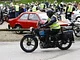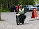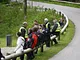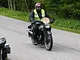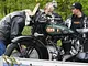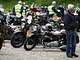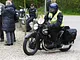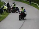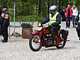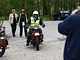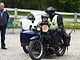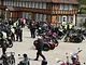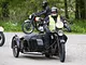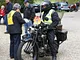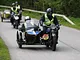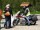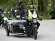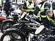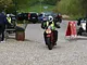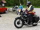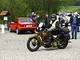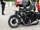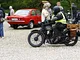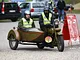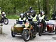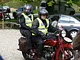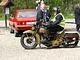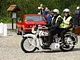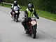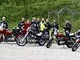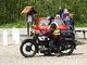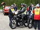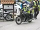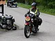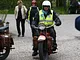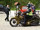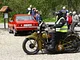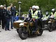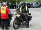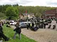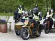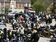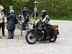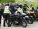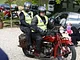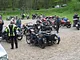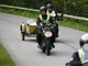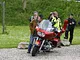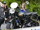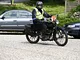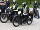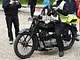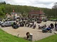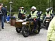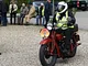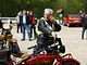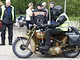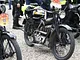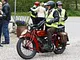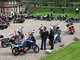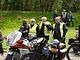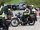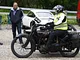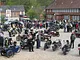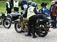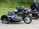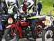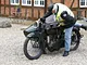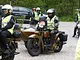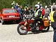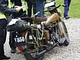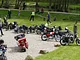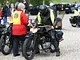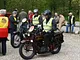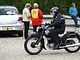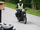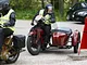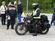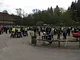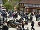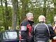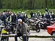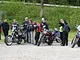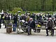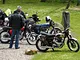Motorcykler fra før 1934 dyster på vej til Skagen i årets løb. I en tiltrængt frokostpause nær Århus lykkedes det at få de fleste i søgeren - virkedes som alle havde det ganske hyggeligt med deres hobby!
