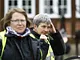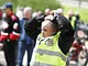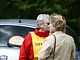 Vagtskiftet ved Marselisborg Slot skærtorsdag kl. 12 tiltrak mange fremmødte, mens politiets indsatsleder undervejs tog sig tid til at besvare spørgsmål fra en nysgerrig dreng.