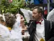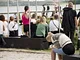 Vagtskiftet ved Marselisborg Slot skærtorsdag kl. 12 tiltrak mange fremmødte, mens politiets indsatsleder undervejs tog sig tid til at besvare spørgsmål fra en nysgerrig dreng.