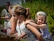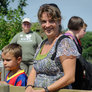 Vagtskiftet ved Marselisborg Slot skærtorsdag kl. 12 tiltrak mange fremmødte, mens politiets indsatsleder undervejs tog sig tid til at besvare spørgsmål fra en nysgerrig dreng.