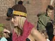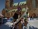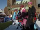 Vagtskiftet ved Marselisborg Slot skærtorsdag kl. 12 tiltrak mange fremmødte, mens politiets indsatsleder undervejs tog sig tid til at besvare spørgsmål fra en nysgerrig dreng.