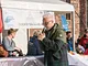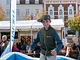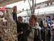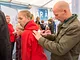 Vagtskiftet ved Marselisborg Slot skærtorsdag kl. 12 tiltrak mange fremmødte, mens politiets indsatsleder undervejs tog sig tid til at besvare spørgsmål fra en nysgerrig dreng.