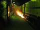 Det store ildsprudende skinneslibetog sleb i aftes på Grenå Banen.