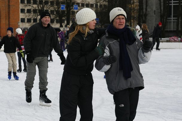 Selvom skøjtebanen ved Pier 4 er større og glattere, er den ved musikhuset meget nemmere at komme til og var derfor pakket som en sønderjysk dybfryser med glade børn i alle aldre der morede sig med at stå mere eller mindre godt på skøjter, søndag d. 24. jan. 2010. Men alle havde det sjovt, hvilket er det vigtigste.