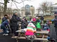 Vagtskiftet ved Marselisborg Slot skærtorsdag kl. 12 tiltrak mange fremmødte, mens politiets indsatsleder undervejs tog sig tid til at besvare spørgsmål fra en nysgerrig dreng.