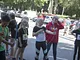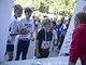 Vagtskiftet ved Marselisborg Slot skærtorsdag kl. 12 tiltrak mange fremmødte, mens politiets indsatsleder undervejs tog sig tid til at besvare spørgsmål fra en nysgerrig dreng.