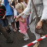 Vagtskiftet ved Marselisborg Slot skærtorsdag kl. 12 tiltrak mange fremmødte, mens politiets indsatsleder undervejs tog sig tid til at besvare spørgsmål fra en nysgerrig dreng.