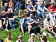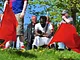 Vagtskiftet ved Marselisborg Slot skærtorsdag kl. 12 tiltrak mange fremmødte, mens politiets indsatsleder undervejs tog sig tid til at besvare spørgsmål fra en nysgerrig dreng.
