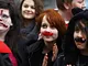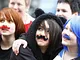 En flok unge mennesker tilføjede STRØGET i Århus lidt humor denne forårs lørdag. Direkte adspurgt kom svaret "VI SKRÆMMER ELLER KRAMMER" . Jeg blev nu ikke særlig skræmt, og vil da også foretrække et kram! Om ikke andet fik mange et forårssmil på læben ved at betragte de unge mennesker.