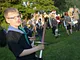 Vagtskiftet ved Marselisborg Slot skærtorsdag kl. 12 tiltrak mange fremmødte, mens politiets indsatsleder undervejs tog sig tid til at besvare spørgsmål fra en nysgerrig dreng.