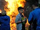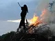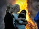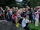 Vagtskiftet ved Marselisborg Slot skærtorsdag kl. 12 tiltrak mange fremmødte, mens politiets indsatsleder undervejs tog sig tid til at besvare spørgsmål fra en nysgerrig dreng.