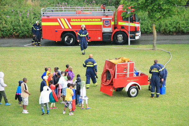 Der var stor begejstring da brandmændene udlagde skum på græsset til børnene i Vejlby Vest. Alle kastede sig ind i skummet da starten gik, og alle nød det, og glemte totalt at det var regnvejr.