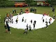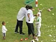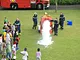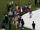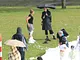 Vagtskiftet ved Marselisborg Slot skærtorsdag kl. 12 tiltrak mange fremmødte, mens politiets indsatsleder undervejs tog sig tid til at besvare spørgsmål fra en nysgerrig dreng.