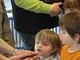 Vagtskiftet ved Marselisborg Slot skærtorsdag kl. 12 tiltrak mange fremmødte, mens politiets indsatsleder undervejs tog sig tid til at besvare spørgsmål fra en nysgerrig dreng.