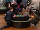 Vagtskiftet ved Marselisborg Slot skærtorsdag kl. 12 tiltrak mange fremmødte, mens politiets indsatsleder undervejs tog sig tid til at besvare spørgsmål fra en nysgerrig dreng.