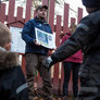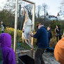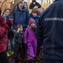 Vagtskiftet ved Marselisborg Slot skærtorsdag kl. 12 tiltrak mange fremmødte, mens politiets indsatsleder undervejs tog sig tid til at besvare spørgsmål fra en nysgerrig dreng.