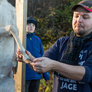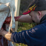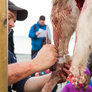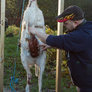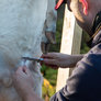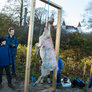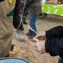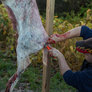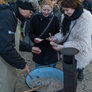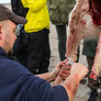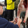 Lars Brøndum der var turguide demonstrerede og fortalte efterfølgende hvordan man brækker og forlægger et dyr. Det blev fuldt med stor interesse af børnene.