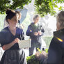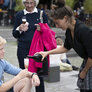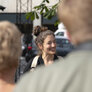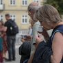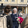 Vagtskiftet ved Marselisborg Slot skærtorsdag kl. 12 tiltrak mange fremmødte, mens politiets indsatsleder undervejs tog sig tid til at besvare spørgsmål fra en nysgerrig dreng.