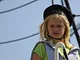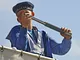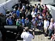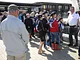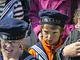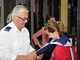 Vagtskiftet ved Marselisborg Slot skærtorsdag kl. 12 tiltrak mange fremmødte, mens politiets indsatsleder undervejs tog sig tid til at besvare spørgsmål fra en nysgerrig dreng.