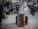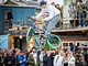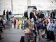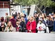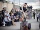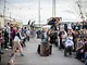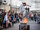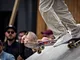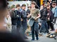 Vagtskiftet ved Marselisborg Slot skærtorsdag kl. 12 tiltrak mange fremmødte, mens politiets indsatsleder undervejs tog sig tid til at besvare spørgsmål fra en nysgerrig dreng.