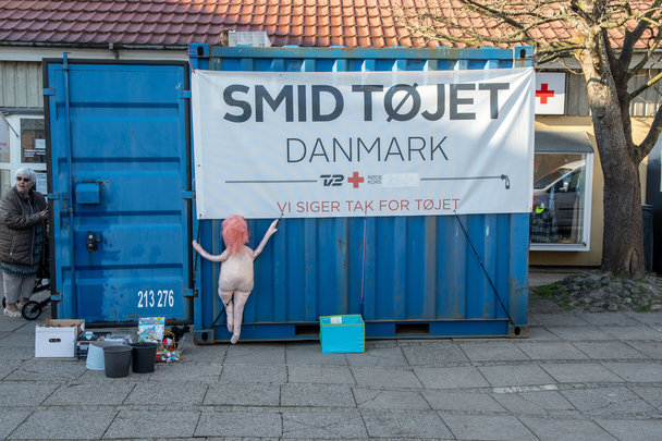 Røde Kors kampagnen "Smid tøjet", var torsdag d. 19. april, i samarbejde med TV2 Østjylland, forbi Røde Kors butikken i Hinnerup.