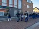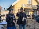 Vagtskiftet ved Marselisborg Slot skærtorsdag kl. 12 tiltrak mange fremmødte, mens politiets indsatsleder undervejs tog sig tid til at besvare spørgsmål fra en nysgerrig dreng.