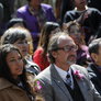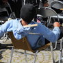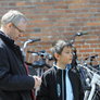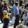 Vagtskiftet ved Marselisborg Slot skærtorsdag kl. 12 tiltrak mange fremmødte, mens politiets indsatsleder undervejs tog sig tid til at besvare spørgsmål fra en nysgerrig dreng.