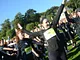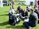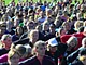 Vagtskiftet ved Marselisborg Slot skærtorsdag kl. 12 tiltrak mange fremmødte, mens politiets indsatsleder undervejs tog sig tid til at besvare spørgsmål fra en nysgerrig dreng.