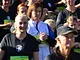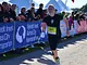 Fotografen (Foto Trine - det er mig) stod det meste af tiden ca 100 meter før mål. I kan finde tid på billederne og selv regne ud hvornår I cirka kom forbi.