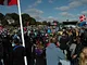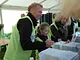 Vagtskiftet ved Marselisborg Slot skærtorsdag kl. 12 tiltrak mange fremmødte, mens politiets indsatsleder undervejs tog sig tid til at besvare spørgsmål fra en nysgerrig dreng.