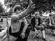 Vagtskiftet ved Marselisborg Slot skærtorsdag kl. 12 tiltrak mange fremmødte, mens politiets indsatsleder undervejs tog sig tid til at besvare spørgsmål fra en nysgerrig dreng.