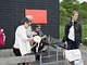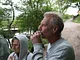 Vagtskiftet ved Marselisborg Slot skærtorsdag kl. 12 tiltrak mange fremmødte, mens politiets indsatsleder undervejs tog sig tid til at besvare spørgsmål fra en nysgerrig dreng.