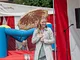 Vagtskiftet ved Marselisborg Slot skærtorsdag kl. 12 tiltrak mange fremmødte, mens politiets indsatsleder undervejs tog sig tid til at besvare spørgsmål fra en nysgerrig dreng.