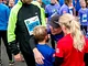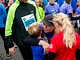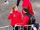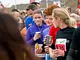Vagtskiftet ved Marselisborg Slot skærtorsdag kl. 12 tiltrak mange fremmødte, mens politiets indsatsleder undervejs tog sig tid til at besvare spørgsmål fra en nysgerrig dreng.
