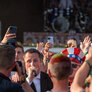 Vagtskiftet ved Marselisborg Slot skærtorsdag kl. 12 tiltrak mange fremmødte, mens politiets indsatsleder undervejs tog sig tid til at besvare spørgsmål fra en nysgerrig dreng.