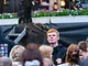 Vagtskiftet ved Marselisborg Slot skærtorsdag kl. 12 tiltrak mange fremmødte, mens politiets indsatsleder undervejs tog sig tid til at besvare spørgsmål fra en nysgerrig dreng.