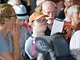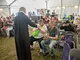 Vagtskiftet ved Marselisborg Slot skærtorsdag kl. 12 tiltrak mange fremmødte, mens politiets indsatsleder undervejs tog sig tid til at besvare spørgsmål fra en nysgerrig dreng.