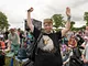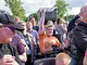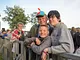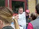 Vagtskiftet ved Marselisborg Slot skærtorsdag kl. 12 tiltrak mange fremmødte, mens politiets indsatsleder undervejs tog sig tid til at besvare spørgsmål fra en nysgerrig dreng.