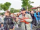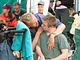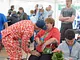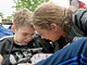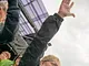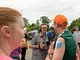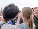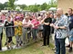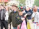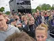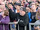 Vagtskiftet ved Marselisborg Slot skærtorsdag kl. 12 tiltrak mange fremmødte, mens politiets indsatsleder undervejs tog sig tid til at besvare spørgsmål fra en nysgerrig dreng.