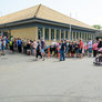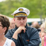 Vagtskiftet ved Marselisborg Slot skærtorsdag kl. 12 tiltrak mange fremmødte, mens politiets indsatsleder undervejs tog sig tid til at besvare spørgsmål fra en nysgerrig dreng.