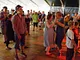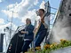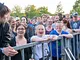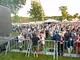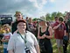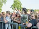 Vagtskiftet ved Marselisborg Slot skærtorsdag kl. 12 tiltrak mange fremmødte, mens politiets indsatsleder undervejs tog sig tid til at besvare spørgsmål fra en nysgerrig dreng.
